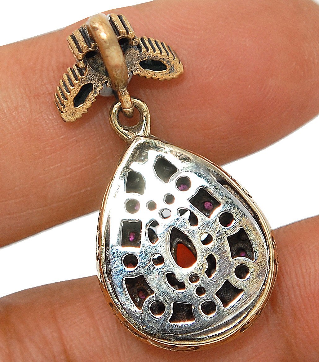 Vintage Ottoman Empire Inspired 3CT Treated Ruby 925 Sterling Silver Pendant