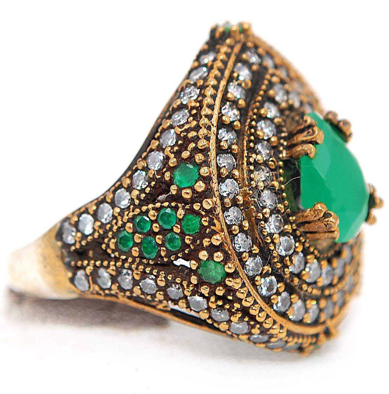 Band Width: Not Applicable Color: White Country of Origin: Thailand Features: Nickel-Free Antique: No Main Stone Color: Green Cut Grade: Excellent Metal Purity: 925 Occasion: Anniversary/Engagement/Birthday/Confirmation/Communion Main Stone Treatment: Treated Gemstone Secondary Stone: Topaz Base Metal: Sterling Silver, 925 parts per 1000 Certification: Not Applicable Type: Ring Diamond Color Grade: Not Applicable Theme: Fashion & Costumes Gemstone Clarity Grade: Eye Clean Ring Size: 8 Brand: Handmade Material: Gemstone Setting Style: Prong Main Stone Shape: Pear Main Stone: Emerald Total Carat Weight: 4 Vintage: No Handmade: Yes Country/Region of Manufacture: Thailand Style: Cocktail Diamond Clarity Grade: Not Applicable Metal: Silver Colored Diamond Intensity: Not Applicable