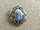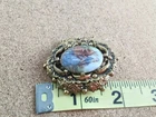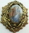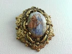 This vintage Victorian courting couple oval brooch is a stunning piece of jewelry that will surely catch anyone's attention. The intricate design features a beautiful couple in a courting pose, with a stunning oval shape that adds to its elegance. The brooch is signed and made of high-quality materials, including porcelain and metal of unknown type. Measuring at 2 inches in length, this brooch is the perfect size to wear on a lapel or blouse. Its multicolor design adds a touch of vintage charm, making it a great addition to any jewelry collection. Made in the United States, this brooch is a true fashion statement that will never go out of style.