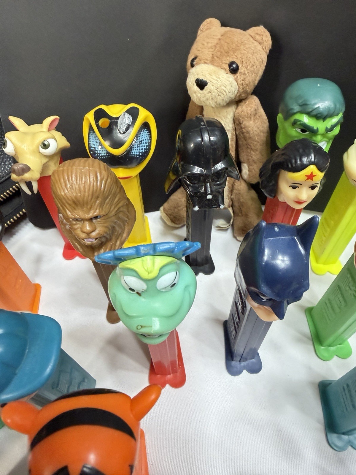 This 31 piece lot of vintage PEZ dispensers includes a variety of unique and collectible designs originating from the United States. Perfect for any PEZ collector looking to add some nostalgia to their collection, this assortment offers a variety of quirky characters and fun features to delight fans of this classic toy. Whether you're a seasoned collector or just beginning your journey, this lot provides plenty of opportunities to enjoy the charm and history of vintage PEZ dispensers.