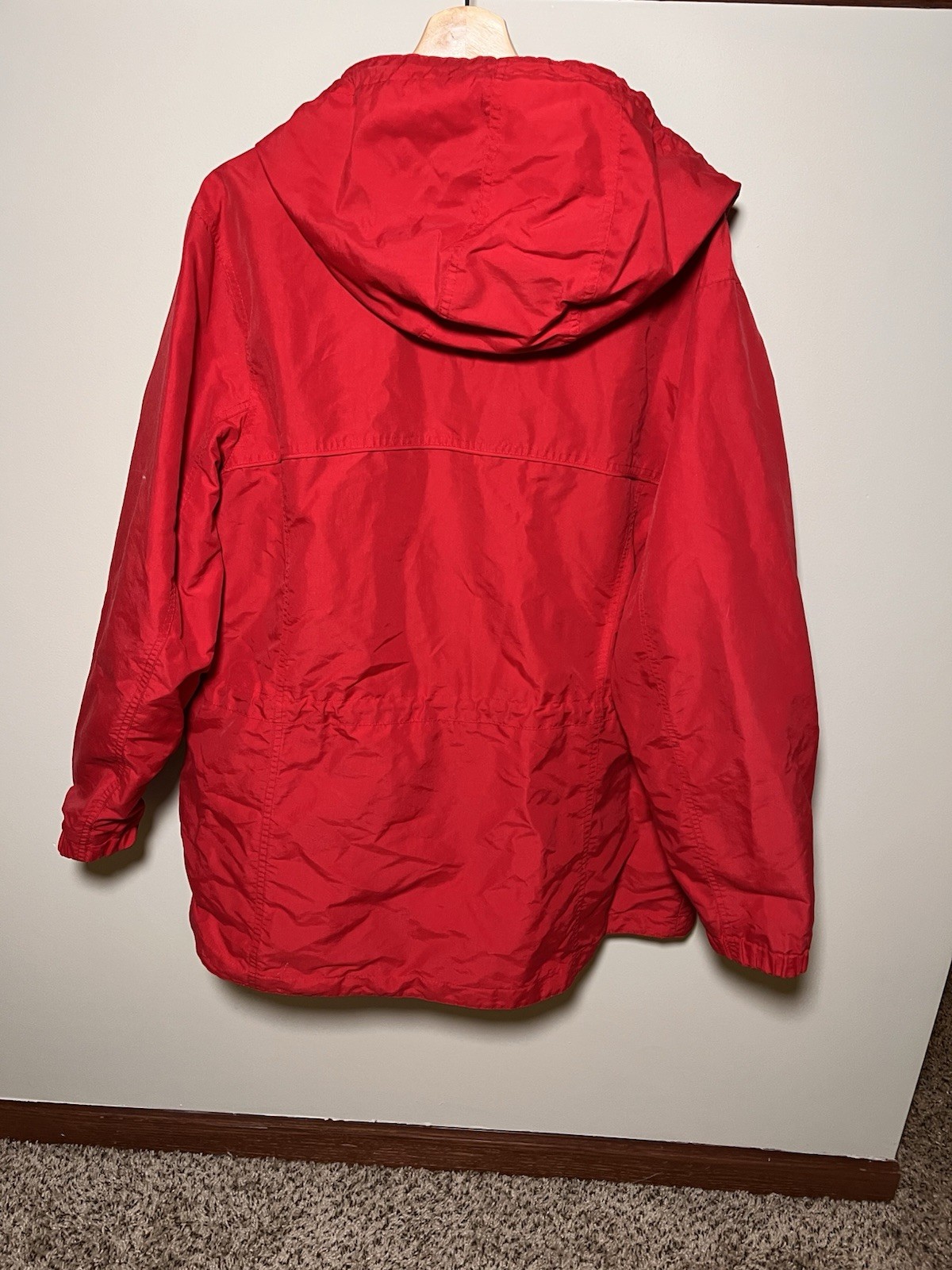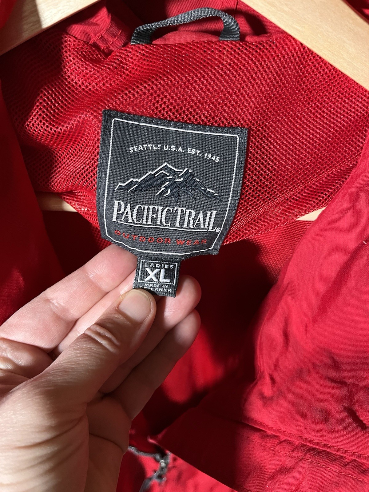 This Vintage Pacific Trail Women's Red Hooded Jacket in Size XL is a stylish and practical outerwear option for women. Made of polyester with a mid-length design, zip closure, and a hood, this jacket is perfect for casual occasions in the winter and fall seasons. The red color and outdoor theme make it a versatile piece that can be worn for various activities. With its regular fit and machine washable care instructions, this vintage jacket from Pacific Trail offers both comfort and convenience.