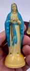 Vintage Pair Mary Madonna Car Statue w/ Magnets - 4" Lady of the Snows & 4" Mary - both marked Hong Kong - expect some discoloration to the plastic that is common with these items and some minor paint loss. PAYMENT: PAYMENT MUST BE MADE WITHIN THREE DAYS OF AUCTION END. COMBINED SHIPPING: I always combine shipping when possible. If you purchase multiple items I will send a revised invoice to reflect the combined costs. If you pay immediately before a revised invoice, it will charge you full price for the shipping. I will refund the difference afterwards. At times when you buy from my store, it will not allow for combined shipping and will want you to pay for each item individually. Again, I will refund the difference. SHIPPING: Buyer to pay shipping and handling charges as stated in this auction listing. I try to keep my shipping/handling charges as low as possible. Included in the shipping portion is a reasonable handling fee that covers the cost to adequately package the item to insure its safe arrival through the post office, Fed Ex or UPS. SALES TAX: Ebay will charge accordingly for your own state as to the rate of Sales Tax. FEEDBACK: If you wish to have Feedback on the transaction, please alert me after you receive the item. I do not do Feedback as a norm as it is not a fair avenue through Ebay. As a seller, I am not allowed to do a negative feedback, but only can do a positive. The buyer is allowed to do negative and positive. It should be the same for the seller as some buyers are not reasonable. In the case of a "non-pay", I can cancel the sale but there is no information on the non-payer's Feedback to alert other sellers that this buyer did not follow through on the sale. I will do Feedback if asked. I NORMALLY SHIP WITHIN TWO DAYS AFTER CLEARED PAYMENT. SHIPPING METHODS VARY FROM PRIORITY MAIL, PARCEL POST, FIRST CLASS MAIL, FED EX or UPS. I try to keep my shipping charges low and I will decide at the time of shipping which of the above will apply.