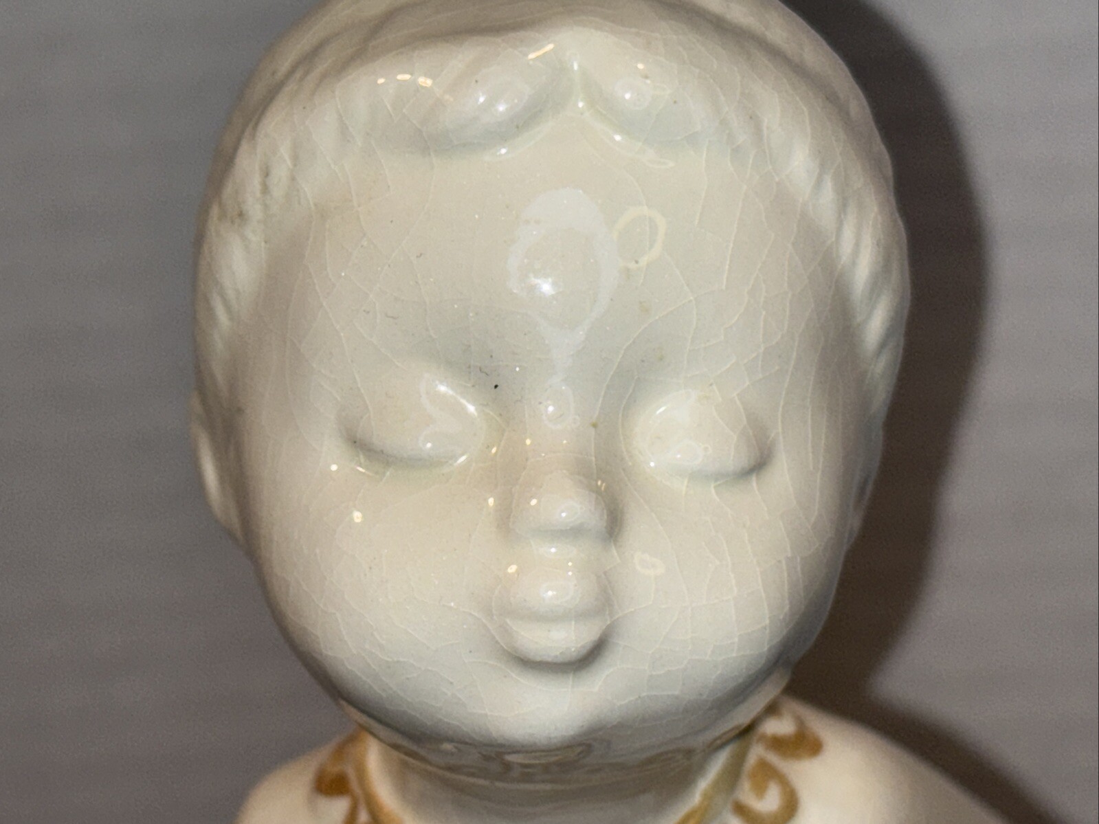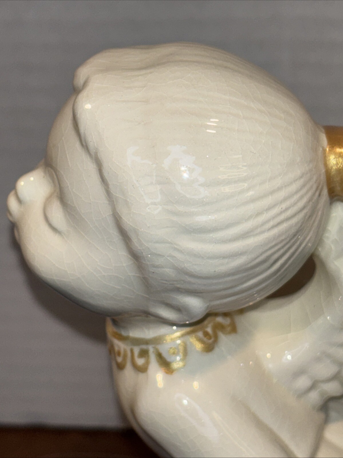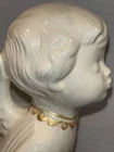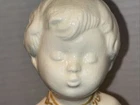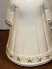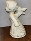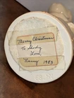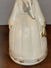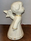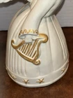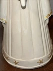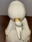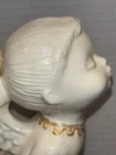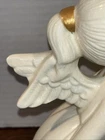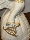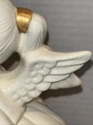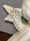 Both angels are in pre owned very good condition. With the only signs of damage or ware to boy and girl Angel being light crazing from the tops of their heads down to the midsole of their bodies and gets lighter and fades to no crazing as it travels down the figures. Both figures have light signs of paint fading to gold accent paint. The girl Angel has a personalized note wishing to Shirley from her nanny wishing a merry Christmas taped in position. (Pictured) Both angels are sold as is as pictured. A vintage pair of white ceramic kissing angels from 1983, standing at 7.5' and 8' tall. These hand-painted figurines are part of the Love collection and feature an abstract art design. The glossy finish adds to their charm, making them perfect for all occasions with a seasonal theme. These angel figurines are a beautiful addition to any decor, embodying a sense of grace and elegance.