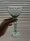 Elevate your home bar collection with this vintage lot of two light green pebbled martini glasses. The glasses stand at an impressive 7 inches tall and showcase a glossy finish that catches the eye. The unmarked glasses are made of pressed glass and have a production style of art glass, making them a unique addition to your drinkware. Each glass is handmade, adding a touch of craftsmanship to your collection. The glasses are perfect for serving margaritas or any other cocktail that you enjoy. Add a touch of elegance to your parties with these beautiful glasses.