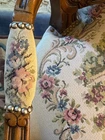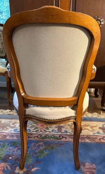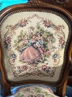 For sale is a stunning pair of vintage French Louis XV-style armchairs (fauteuils), masterfully crafted in Italy in 1994 by Sofa In SRL (Matera). These chairs are in excellent vintage condition and offer a classic, romantic aesthetic perfect for a parlor, bedroom, or formal living space. Design Highlights: Upholstery: Exquisite needlepoint tapestry featuring a classic "courting couple" pastoral scene on the backrest, surrounded by vibrant floral borders. Frame: Hand-carved wooden frames with elegant cabriole legs and floral cresting details. Authenticity: Includes the original manufacturer’s tag on the bottom, dating the delivery to 1994 and confirming its Italian origin. Comfort: Modern polyurethane foam and polyester fiber cushioning ensure these chairs are as comfortable as they are beautiful. Condition: Excellent vintage condition. The needlepoint is vibrant with no visible pulls or tears. Frames are sturdy with only minor, age-appropriate wear to the wood finish. (Optional: Please see photos for detail.) Shipping/Pickup: Due to size, Local Pickup is recommended. Shipping can be arranged via freight (e.g., uShip) at the buyer's expense.