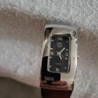 This Vintage Paolo Gucci watch features a curvy stainless steel case with a new battery. It has a leather band and is a vintage piece from the past. The watch is analog and made of stainless steel and leather materials. It is an original design by Paolo Gucci and is suitable for women.