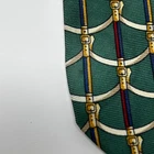 Vintage 90s Paolo Gucci Tie Necktie Green Horse Bit Tack Stirrups Equestrian Silk Made In Italy Condition: Has some pulls on the bottom of the tie and faint spots. No other flaws noticed. See photos. 3.75" wide 60" long