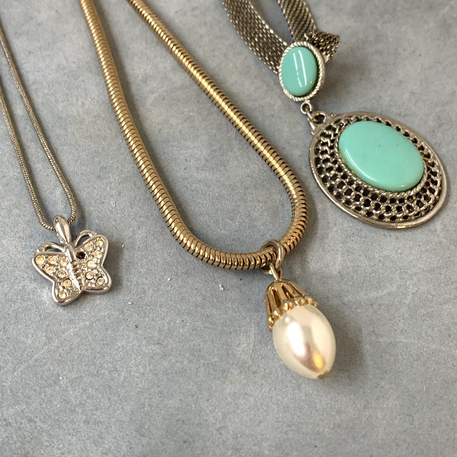 This is for a group of Vintage Park Lane jewelry items. There is a large flower pin, kseveral necklaces butterfly missing one stone and turquoise style one missing hook. Condition is Pre-owned. Shipped with USPS Ground Advantage. Items are preowned & sold as shown. Please view carefully. Shipping and packaging $10.00 within the continental USA only. No international sales. Thanks