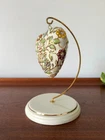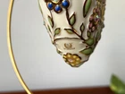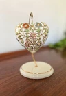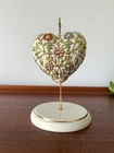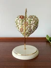 This beautiful porcelain heart with bejewelled design was a collaboration between Lenox and renowned designer, Parvaneh Holloway. Swathed in her iconic style and set off with jewels to sparkle, this Lenox porcelain heart hangs to be displayed and admired. In wonderful vintage condition. The gold-tone coating seems to be peeling in spots (shown in photos) and the hook is a little wobbly. Sold as is. See photos. Approximate dimensions are: 7.5" x 5" Returns 30 days. Buyer is responsible for return shipping costs and any loss in value if an item isn't returned in original condition.