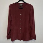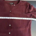 Vintage Patrick Collection 100% silk burgundy button up long sleeve blouse. Size Medium (measurements in photos). **Missing a button on one sleeve**. Otherwise, is in great pre-owned condition. Please see photos for more condition and item details.
