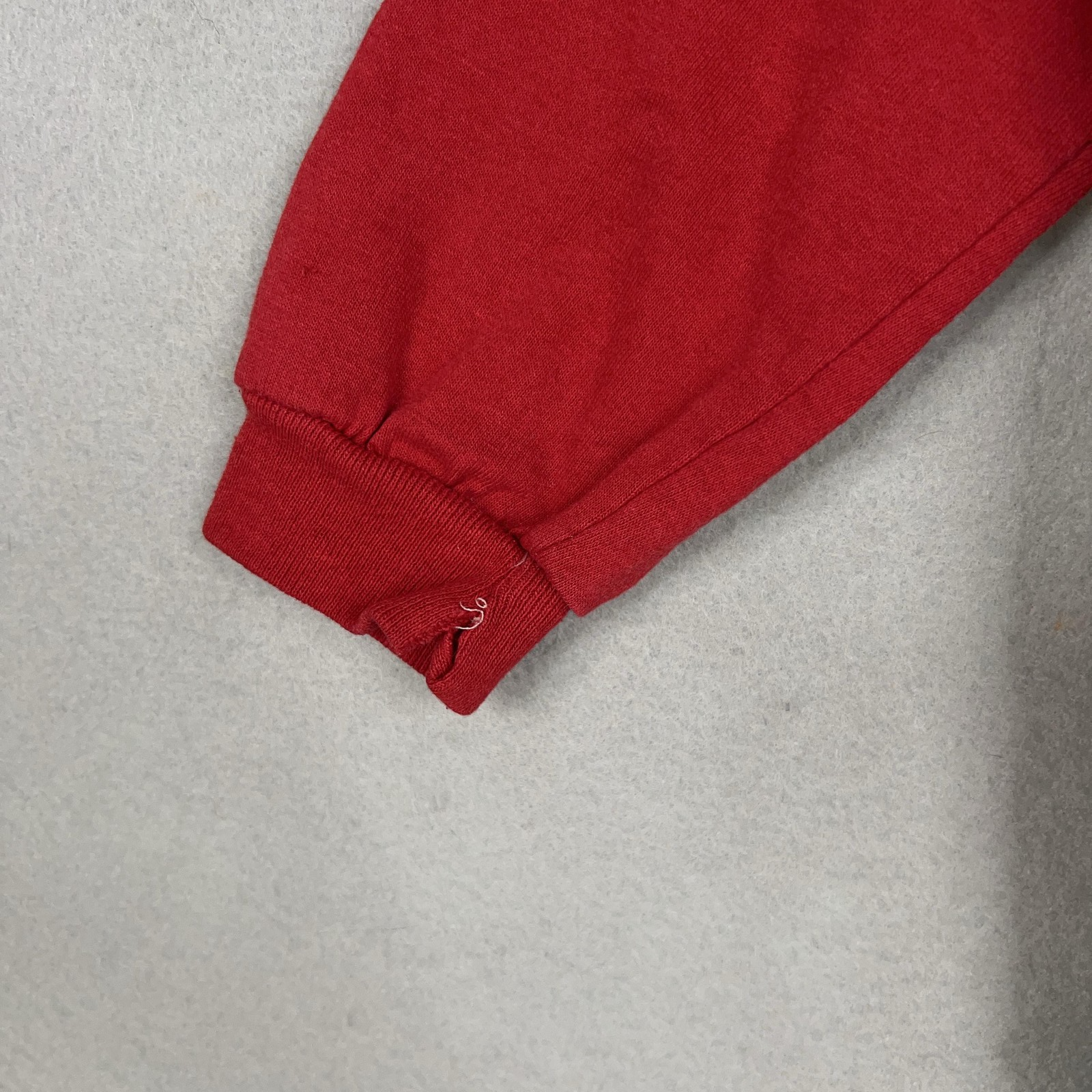 Vintage Peanuts Charlie Brown Sweatshirt Youth 4T Red Green Map Made USA 90s Shows wear with a small fray/pulled thread at the red sleeve cuff and a faint spot on the back of the cream panel (see photos). Typical light wash wear/fade consistent with age. Graphics remain presentable; seams and ribbing intact. Brand/License: Peanuts "Charlie Brown and Gang" (tag shows Charlie Brown and Gang) Item: Vintage crewneck sweatshirt Gender/Size: Youth/Toddler size 4 (fits like 4T) Material: 50% Polyester, 50% Cotton Country of Origin: Made in USA Colors: Cream body with red and green colorblock sleeves; red ribbed collar; green ribbed waistband Design/Graphics: Front features Charlie Brown with a friend over a map-style print that appears to reference Chattanooga Features: Crewneck pullover, long sleeves, ribbed collar/cuffs/hem Tag details: Official Peanuts/Charlie Brown and Gang branding; content/care tag indicates 50/50 blend and Made in U.S.A. Notes: Classic 1990s licensed Peanuts style. Please compare to a similar sweatshirt for best fit. Measurements: - Previous washings may change the sizing written on the tag. - Please refer to the photos above for all measurements. - Please compare our measurements to that of one of your favorite garments. - Please note, item measurements are approximate . All items are bagged and sealed after being photographed, then stored in a smoke free environment to ensure the item is exactly the same as when photographed. All items have been washed per eBay standards & policies. I carefully package and ship daily. Feel free to contact me with any questions.