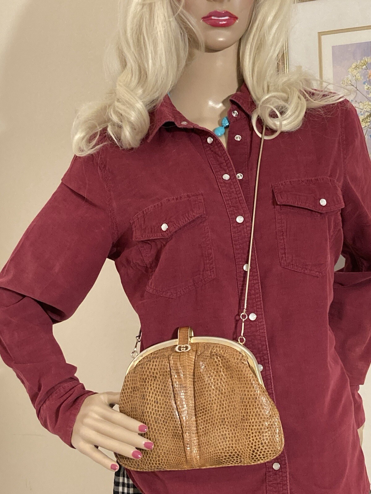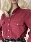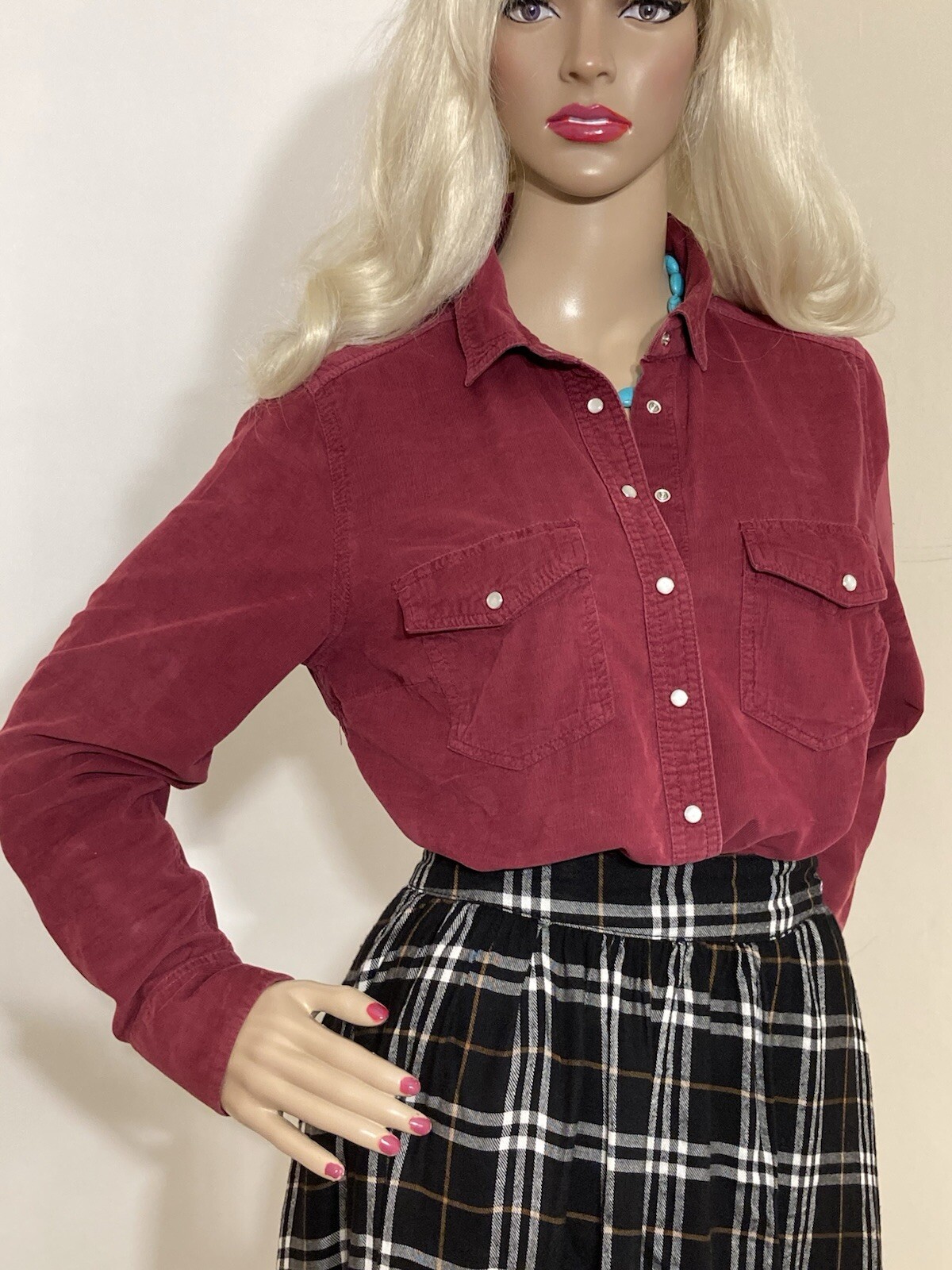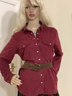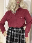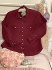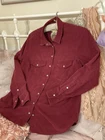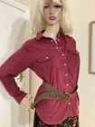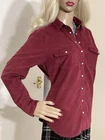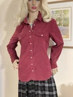 Fabulous VINTAGE STYLE Western Cowboy~ Styled Needle fine very soft corduroy Shirt with Traditional style Pearl Snap Stud Buttons & Detailing by PER UNA~ M&S ~ Marks & Spencer Colour states RUBY 85% COTTON~15% LYOCELL TENCEL (Stretch to anyone who doesn’t know) VERY GOOD PRE OWNED CONDITION As I purchased a size that’s too big for me THIS IS SIMPLY CLASSIC & one of those garments that even looks better with age That said it’s kept its colour well & irons like a dream! SIZE 12 ~*MEASURES*~ Shoulders 16” Bust 38”-40” Waist 38” Hips 42” Length 21” sides 26” front & back Sleeves 18” from under arm Inc 3” cuffs FABULOUS FRESHLY LAUNDERED & READY TO WEAR Please view my other auctions Thank you
