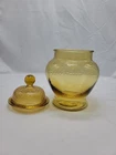 Item Height:9inFeatures:Airtight, Easy to Clean, With LidVintage:YesShape:RoundSize:MediumItem Width:5inColor:YellowType:JarNumber of Compartments:1Lid Type:Snap LidCountry/Region of Manufacture:United StatesBrand:UnmarkedNumber of Items in Set:2Item Length:5inBackstamp:ImpressedMaterial:GlassProduction Technique:Fused Glass