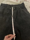Vintage Pege Skinn real leather pants — Made in Sweden — 100% genuine leather — High-waisted with pleated front — Double button and zip closure — Wide/straight leg cut — Estimated modern size Small/Medium (13.5” waist flat, 12” rise, 29” inseam) Condition: Excellent vintage shape with natural leather wear A rare archival piece perfect for fans of minimalist Scandi fashion or edgy statement bottoms.