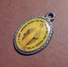 Vintage Pendant Virgin Mary Medal Oval Acrylic Coating Silver-Tone 1.5" Inches.