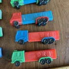 This vintage Pez lot consists of semi trucks with no feet, manufactured in Slovenia. These collectibles are unique pieces that would appeal to Pez collectors and enthusiasts. The trucks add an interesting twist to the traditional Pez figures, making them a standout addition to any collection. Made in Slovenia, these semi trucks bring a touch of European charm to your Pez collection.