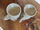 HomeVintage Pfaltzgraff Folk Art Stoneware Coffee Mug Set of 2 Footed Pedestal 5 Inch