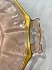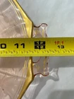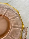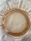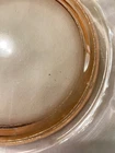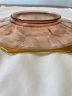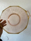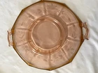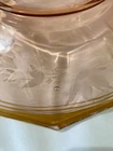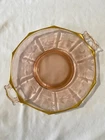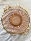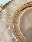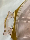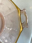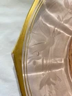 Beautiful, and hard to find, Pink Depression Glass platter. This beautiful platter is in excellent shape for its age of around 90 years old! It is gracefully etched with a floral pattern. It is then trimmed in (I have been told) 22 kt gold band with two smaller gold lines. The handles are also beautifully trimmed in gold. This piece has definite signs of authentic Depression glass with the small inclusions and small bubbles in the glass. There is some where in the gold in the edges - as shown in the photos. There are no chips or cracks on the edge or on the uniquely shaped handles! This is definitely a gorgeous heirloom piece that can be hard to find.