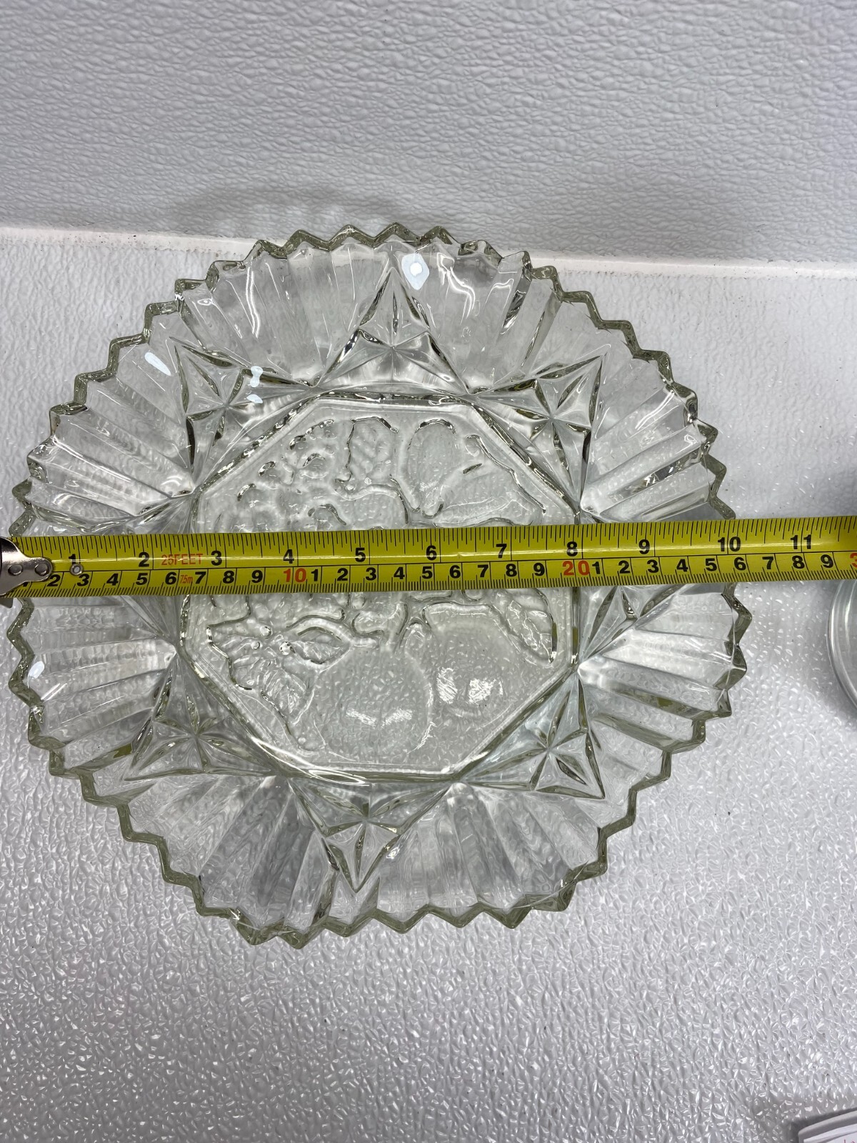 Vintage Clear Glass Pioner Fruit Pattern 10 Inch Bowl/Platter in very good condition.No scratches,no cracks,no ships WE OFFER COMBINED SHIPPING AND MULTI-ITEM PURCHASE DISCOUNTS. IF YOU HAVE ANY QUESTIONS, PLEASE LET US KNOW