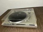 This is a puoneer PL-200 turntable… i sell this as parts no returns because t was s missing one of the bottom feet, and missing the counter weight… i did put my personal weight on it and replaced cartridge with a working one… it plays beautiful when i added weight and a good stylus cartridge…i almost just bought the parts needed and kept it, but i have to many turntables… when i put back on the original cartridge and played it it played decent but it needs new needle…auto return works also…