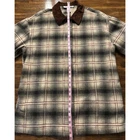 The Limited Womens 8 Shacket Vintage Button Up Collared Plaid Wool Blend Pockets 40% Wool 30% Polyester 30% Acrylic Brown faux suede collar and faux leather buttons. Pockets on both sides of waist area. I recently got this dry cleaned and it has not been worn since. I have a smoke free home! Thank you for checking out my items. Message me with any questions!