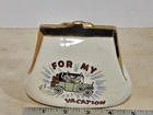 The vintage Pocket Book Vacation Fund Ceramic Bank is a collectible still bank made of ceramic material. This unique piggy bank is designed to look like a pocket book, providing a charming and nostalgic way to save money for a vacation. Its vintage appeal makes it a charming addition to any collection of still banks or decorative items. With its ceramic construction, this bank is durable and adds a touch of whimsy to any space.