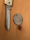 I have up for auction a RareVintage Pocket / Folding Knife, advertising for the S.S. Orchades with 2 Blades. Made in Sheffield, England by E Blyde Circa 1920’s. When closed the pocket knife is 3.25” wide by 7/8” tall. UNCLEANED, please see all pictures for wear / imperfections. Blades snap tightly open / closed. SOLD AS IS. Quarter is first size reference of the blade and NOT included. Buyer must pay within 24 hours of the auction ending. Recent feedback: Jason, Alberta “Arrived quickly as pictured. Extremely well packaged. Great seller”. David, Washington “Fast shipping. Item was packaged very well. Honest and reliable seller” Justin, Wisconsin “Fast shipping, great item, seller highly recommended!!! Bid with confidence!!Att+++++” Follow me or add me to your Favorite sellers list. I ship only to Canada and the USA only(NO Guam, Hawaii, Alaska or Puerto Rico). Shipping will be FREE and includes postage; tracking, insurance up to the sold amount so The Item will arrive in 5-12 business days (Mon-Fri) after payment is received. Sold As Is. I add new items every week on Sundays at 7pm Pacific time, Matt.