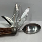 Vintage Pocket Knife 11 Multi Tool Hobo-Camping With Bone Handle This is a pre-owned item in good condition. There is some light rust on a couple of the blades. See photos for specific condition. International Buyers: Please note item cost and shipping does not cover any customs fees, import tax, VAT or any other cost associated with the import of this item into your country. All fees are buyers responsibility.