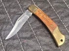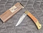 Crafted for the avid collector, this Vintage Pocket Knife features a sleek brown wooden handle and a manual opening mechanism. The knife boasts a single blade that measures under 2.75 inches, ensuring compactness and ease of carrying. Its slipjoint lock type provides secure blade retention while allowing for convenient pocketing. As an original vintage piece, this pocketknife holds the charm of timeless design. Despite being unbranded, it stands out with its straightforward functionality and robust construction, making it a valuable addition to any collection or a reliable tool for everyday use.