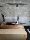 Blade Type:Clip Point, Drop Point, PenDexterity:AmbidextrousHandle Material:DerlinBrand:SchradeVintage:YesCountry/Region of Manufacture:United StatesColor:BrownNumber of Blades:3Original/Reproduction:OriginalBlade Material:Carbon SteelLock Type:SlipjointBlade Edge:PlainOpening Mechanism:ManualBlade Range:Under 2.75in.Type:Pocketknife