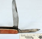 Vintage pocket knife made by Ambassador in the U.S.A. Two blades, 2 1/2 and 1 1/2 long. Advertising promotion by The Vernon Company, in Newton Iowa (company is still in business). Blades open easily. Knife needs to be cleaned- but I did not attempt to clean or sharpen it. Please look carefully at the pictures for the best idea of condition. PLEASE READ -SHIPPING & PAYMENT: I usually ship the next day possible. If payment has not been received within 4 days your order will be canceled. Non paying bidders will be blocked. I do my best to pack things carefully, and to keep shipping low. If you feel I have made an error in calculating the shipping, please message me and ask. Please visit my store for more great items! # 1803/W1