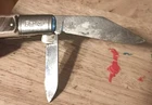 This vintage pocket knife is a must-have for any collector. Made by Colonial in the United States, it features a carbon steel blade and a synthetic handle in brown color. The manual opening mechanism and two blades make it a versatile tool for everyday use. This original piece is a vintage folding knife, with a plain edge and no modifications. It is perfect for those who appreciate the classic design of factory-manufactured knives. Add this unique item to your collection today.