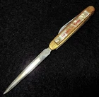 ~ Vintage Pocket Knife, COLONIAL "Les Smith - TEXACO" - Brass Handle Stamped: Yes Brand: TEXACO (Advertisement) Mfg.: Colonial Knife Co. Dated: (c. 1960s-1970s) Status: Discontinued Origin: USA Color: Gold, Mother of Pearl, Red Type: Pocket Knife Model No.: N/A PAT. No.: N/A Material: Carbon Steel, Brass, Plastic * Before & After: This item has been professionally cleaned & serviced while in our possession. (DID NOT SHARPEN Original Edge) * Note: CAUTION This item is NOT A TOY! (Blade Is Extremely Sharp!) ~ Special Characteristics! RARE Find! H-T-F Design! All Original! Still Retains Its Original Blades! ~ Measures Approx: 5⅝ "L (folded) 1st Blade: 1⅜"L 2nd Blade: 2¾"L (Marlinspike/Letter Opener) ~ Weighs Approx: 0.8oz ~ With consideration of the age, use, & material. I would consider this Vintage Pocket Knife, COLONIAL "Les Smith - TEXACO" - Brass Handle to be in EXCELLENT - MINT condition! View all photos for the best description of the condition. No signs of repair! No defects or flaws! No dry rot or decay! No rust or corrosion! No missing parts or hardware! No loose or wobbly parts! No cracks or fractures! No dents or dings! No bad smells or odors! Very clean & well-kept! Condition is used. (Pre-owned) * Before & After: This item has been professionally cleaned & serviced while in our possession. (DID NOT SHARPEN Original Edge) * Note: Very snug lock. (open & close) * Note: (Please view photos closely for any missing parts, hardware & overall quality). ~ Legal Note: This is a vintage and/or collectible item. Buyer assumes all liability, and by the very purchase of this item pledges its legal use, and that all local, state, & federal laws are being complied with. (http://pages.ebay.com/help/policies/firearms-weapons-knives.html) * Note: CAUTION This item is NOT A TOY! ~ THANK YOU FOR LOOKING!! Complete Satisfaction Is Guaranteed! We are thriving for a solid reputation for selling Top Quality Items! All of our items are stored in a smoke & pet-free environment. Item(s) shown in photos will be the item(s) that you receive. Please refer to all photos as part of the description. Please refer to all photos for the best description of the condition. Measurement ruler(s), item identifier(s), & display easel(s) are NOT included (if present). (Unless specified otherwise) Please notify us if you have any questions or concerns or would like additional photos before bidding or buying. Please notify us if you feel there is an issue or problem with this listing (title, description, pricing, shipping, etc.). If you have any issues with an item after receiving it, please contact us before leaving negative feedback. If satisfied, please take a moment of your time to leave positive feedback. THANK YOU! ~ Quality & Condition Scale 0 - FOR PARTS 1 - FOR PARTS - FAIR 2 - FAIR 3 - FAIR - GOOD 4 - GOOD 5 - GOOD - GREAT 6 - GREAT 7 - GREAT - EXCELLENT 8 - EXCELLENT 9 - EXCELLENT - MINT 10 - MINT ~ SHIPPING NOTES Only when it's possible, we will combine shipping. So please see our other listings BEFORE paying..... We CAN NOT combine additional shipping costs after you have paid. All international sales will be dealt with through "eBay's International Shipping" service (EIS). Import duties, taxes, and charges are not included in the item price or postage cost. These charges are the buyer's responsibility. Please check with your country's customs office to determine what these additional costs will be prior to bidding or buying. {Rev. 6/7/23}