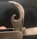 This vintage pocket knife by Camillus is a true piece of history. Made in the United States in 1972, it is an original item from the Vietnam era. Its sleek design and sharp edge make it a perfect addition to any militaria collection. The knife's handle features the iconic Camillus logo, adding to its collectible value. This edged weapon is a must-have for any enthusiast of period items or military history. Knife has 4 blades in good used condition. Marked US and Camillus on the blade.