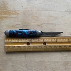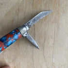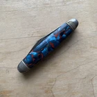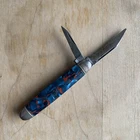 Vintage Pocket Knife - Hammer Brand USA - Celluloid Grips Red Blue 2 Blade NICE!. One of the sharpest looking pocket knives I’ve ever seen, and I’m not talking about the edges on the blades. The grips on this one are to die for. The owner put his monogram (nice job etching it) on one of the bolsters. Tip is chipped on long blade. Blades are sharp. Could use a good cleaning but this is a nice little piece for your collection. Likely late 1930’s - 1940’s. Ships ASAP! Thanks