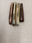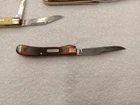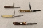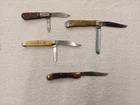 Lot of 4 old pocket knives. No idea beyond what you see pictured for age, collectable, etc. They do "function". Perhaps could use a good once over from a knife specialist. Please see photos. Sold as is.