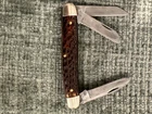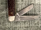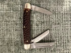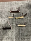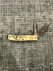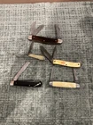 Lot of 5 vintage USA made knives. The Camillus is a small rope knife with no snap in the blade. Hammer brand has snap in both blades and is great shape for its age. Kutmaster stockman has had main blade work at some point. I can tell the blade has been reprofiled to make it a user again. All 3 blades are snappy. The Utica is a small pocket watch/key chain knife. Imitation mother of pearl. No snap. The 1940 worlds fair has cracked scales which have been glued back on at some point. The backside scale has a mason symbol.