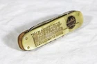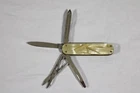 Vintage Pocket Knife - Mother of Pearl Style Promotional - circa 1950-60s - mother of pearl style case - brass inlay with: The BASSICHIS COMPANY 2323 W. THIRD ST. CLEVELAND 13 OHIO Quality CULLET - brass rivets in each corner of the case - knife blade = approx. 1-3/4" L x 1/4" W, stamped AS SOLINGEN GERMANY (on tang) - file blade = approx. 1-3/4" L x 1/4" W, double sided - scissor = approx. 1-3/4" x 1/4" - flat head screwdriver = approx. 1-3/4" L x 7/64" W - case dimensions approx - 2-3/4" L x 5/8" W x 5/32" thick - The Bassichis Company was established in 1896 in Cleveland, Ohio, it specialized in glass recycling for re-use in industrial applications - this item is in good condition as pictured - from a SMOKE-FREE and PET-FREE environment