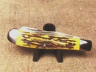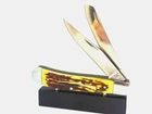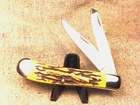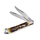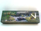 BEAVER CREEK KNIFE SALE wit h FREE SHIPPING! MUST BE 18 TO ORDER. PRICE REDUCED! was: $17.98 CLASSIC BEAVER CREEK (FROST) TRAPPER KNIFE, STAG RESIN HANDLES with RIFLE EMBLEM, 4" (closed) #BVR-532ST. 2- 440 STAINLESS STEEL RAZOR-SHARP STAINLESS STEEL BLADES CLIP & STAG THE KNIFE HAS BRASS PINS, STAINLESS STEEL BOLSTERS & LINERS. NEW in FACTORY BOX. Made in China. SHIPS USPS FREE! PLEASE OBEY ALL LAWS. CAUTION: BLADES ARE VERY SHARP! Beaver Creek Stag Bone Resin Trapper ITEM # BVR-532ST BRAND: Beaver Creek CONFIGURATION: Trapper HANDLE MATERIAL: Stag Bone (Resin) LENGTH (CLOSED): 4" Original Retail: $29.67 FEATURES: Brass Pins Stainless Steel Bolsters Stainless Steel Blades Stainless Steel Liner Thumbnail Pull Rifle Emblem