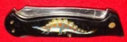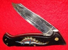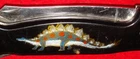 This is a Rare Vintage Pocket Knife with a Stegosaurus / Dinosaur on it. The 5” long knife, has a black Lucite handle. One side of the handle has the word “Stegosaur”, and the reverse side has the colorful image of the spiney prehistoric beast. The knife has a 4” long blade, that is marked on one side “Stainless / Japan” with the image of a 5 pointed star. The knife handle is in very good condition, with only a few small nicks to the lucite corners on one side, and some light wear otherwise. The blade is in great condition, and just needs to be shined up. Lucky Buyer pays successful amount, plus $5.00 shipping in the USA. Thank You for Considering My Item!!