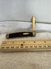 This vintage pocket knife is a unique addition to any collection. Made in Japan between 1940-1945, it features a slipjoint lock type and a plain edge blade made of carbon steel. The handle is made of bone and the knife has a total of four blades, including a spear, punch, cap lifter, and can opener. The knife's dexterity is ambidextrous and it is manually opened. The knife's color is brown and it is an original piece, not a reproduction. The knife's blade range is under 2.75 inches, making it a perfect size for everyday use. This knife is a must-have for any vintage folding knife collector or enthusiast.