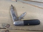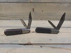 This vintage set of pocket knives features two Barlow knives, each with two blades. The blades are made of carbon steel with a plain edge and a clip point blade type. The knives are ambidextrous and have a slipjoint lock type. The handles are made of bone and are black in color. These knives were manufactured in the United States by Imperial and Kutmaster USA, and are original vintage pieces. They are perfect for collectors of vintage folding knives and make a great addition to any collection. These knives are manual opening and have a blade range of under 2.75 inches.