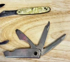 This is a lot of six vintage pocket knives. All come in various size and shapes. One of the pocket knives is a Victoroinox (the white advertisement knife). The top 2 knives are made in Japan, the bottom left knife is made in Italy, and the bottom right knife is made in the USA. Have questions, please ask. Thank you.