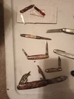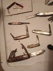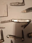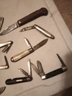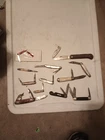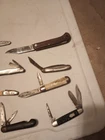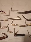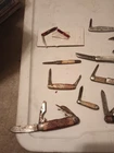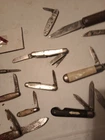 This lot of 13 vintage pocket knives features a variety of brands including Western, Wadsworth, Seneca, Caldwell, Colonial and more. With a range of handle materials and colors, these knives are perfect for collectors and enthusiasts alike. Whether you are looking for a unique addition to your collection or a functional knife for everyday use, this lot has something for everyone. The knives are all factory manufactured and have a vintage feel, making them a great conversation piece as well as a practical tool. Explore the many details and features of each knife to find the perfect one for you. Some could not read many need cleaning and repair selling as is