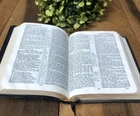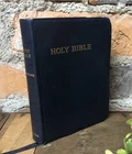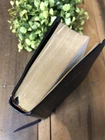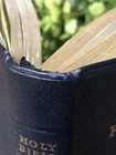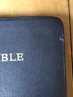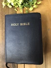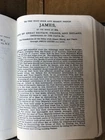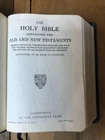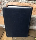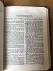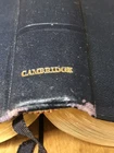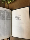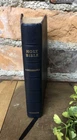 Vintage Pocket Reference Holy Bible KJV Concordance Maps Gazetteer Cambridge Offering a vintage pocket size Holy Bible as pictured. King James Version with a concordance, index, maps, and gazetteer. It was printed in Great Britain by Cambridge of the University Press. Black (or maybe very dark blue) faux leather flexible cover with gold gilded page edges and ribbon book marker. This compact Bible contains both the New and Old Testaments as well as center column reference on each page. Expect wear to binding, corners and edges, feels like leather but it is actually a faux leather (see wear in photos). The presentation page is personalized and dated 1961, no other writing noticed. Buying as is, as pictured, issues noted. Bible measures about 5.5" x 4" and weighs about 10 oz.