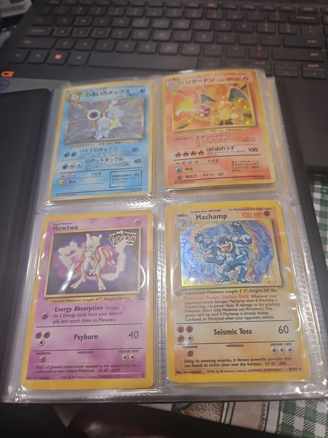 Vintage Pokemon Binder featuring a collection, from various sets including Base Set, Team Rocket, and Gym Heroes. The cards showcase a range of attributes such as Water, Wind, Fighting, Darkness, and more. The binder includes holographic cards (Holo's) featuring popular characters like Mewtwo, Kingdra, Gyarados, and Venusaur. This collector's item is from 1999 and manufactured by Wizards of the Coast, making it a nostalgic addition to any Pokemon TCG collection. Cards condition ranges some are in light played to heavily played. The Charizard is probably one of the better condition same with Dark Blastoise. I will also throw in a suprise psa graded card. On Feb-17-25 at 19:47:44 PST, seller added the following information: Vintage Pokemon Binder featuring a collection, from various sets including Base Set, Team Rocket, and Gym Heroes. The cards showcase a range of attributes such as Water, Wind, Fighting, Darkness, and more. The binder includes holographic cards (Holo's) featuring popular characters like Mewtwo, Kingdra, Gyarados, and Venusaur. This collector's item is from 1999 and manufactured by Wizards of the Coast, making it a nostalgic addition to any Pokemon TCG collection. Cards condition ranges some are in LIGHT PLAYED to HEAVILY PLAYED. The Charizard is probably one of the better condition same with Dark Blastoise.