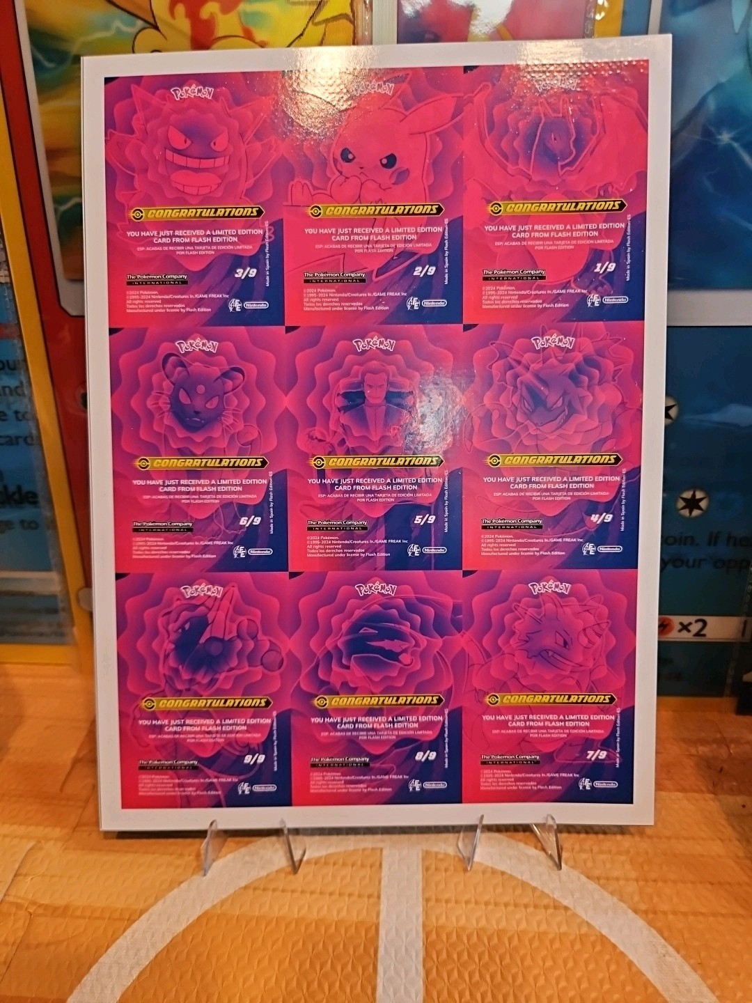 Country/Region of Manufacture: Peru Genre: Adventure, Fantasy, TV & Movies, Video Games Franchise: Pokémon Type: Non-Sport Trading Card Age Level: 4+ Language: English Year Manufactured: 2024 Original/Licensed Reprint: Original TV Show: Pokémon Character: Pikachu, Charizard, Gengar, Mewtwo, Lugia Manufacturer: Nintendo