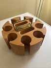 Add a touch of vintage charm to your poker nights with this classic wood carousel caddy. Designed to hold two decks of cards, it's the perfect accessory for any poker enthusiast looking to enhance their game night experience. The caddy features a nostalgic design that evokes the spirit of old-time casinos, making it a great conversation starter and a must-have for collectors alike. Crafted for both functionality and aesthetics, this unbranded set is versatile enough to suit any casino or poker memorabilia collection. Its origin may be mysterious, but the craftsmanship speaks for itself, ensuring this piece is not just a container but a slice of poker history. Perfect for organizing your chips and adding a hint of nostalgia to your gaming table. *Chips & cards not included