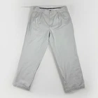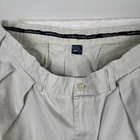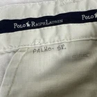 Vintage Polo Ralph Lauren Men's Ivory Chino Pants in size 36, featuring a high rise with pleated front, button and zip closure, made of cotton canvas fabric. This classic style includes slash pockets, embroidered logo accents, and a tapered leg for a regular fit. Ideal for various occasions like travel, workwear, or casual outings, these pants offer comfort and easy care, suitable for all seasons with a touch of 90s urban and grunge themes.