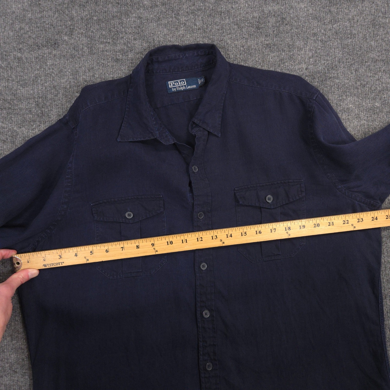 Vintage Polo Ralph Lauren Linen Shirt Mens XL Blue Garment Dyed Flap Pockets 90s Great vintage condition. Please see photos for measurements. Sold as pictured. Thanks for looking! -Measurements are approximate, please measure and check your favorite items at home to estimate fit -100% authenticity guaranteed -Items typically ship next business day